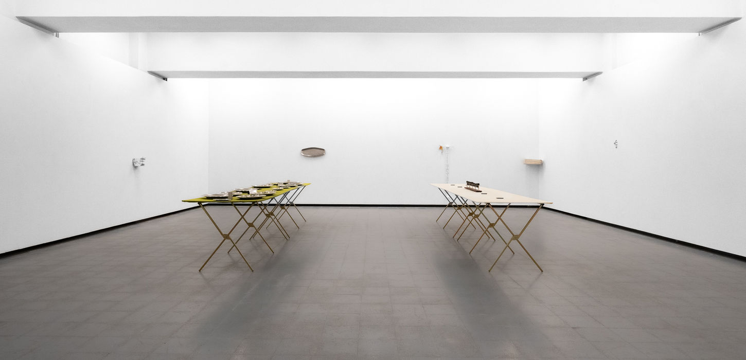 Quando vi "O que é um lar sem uma mãe? (sobre Buster Keaton no filme O Espantalho) pensei logo "Casa sem outro", o que deu origem a toda esta mesa. Esta peça, "Temos de ficar aqui", em que a ideia era registar, no fundo, estes deslizes freudianos, que são palavras que têm o mesmo som mas significados diferentes. Uma vez, em terapia, estava a falar sobre o tempo, e a sensação de que nunca havia tempo suficiente. E ela disse: "Ainda há tempo". E eu disse: "Roubar tempo? Ou "Ainda há tempo"? E, na verdade, toda esta mesa é "Tempo de aço". "
